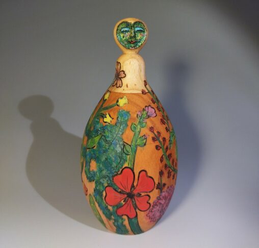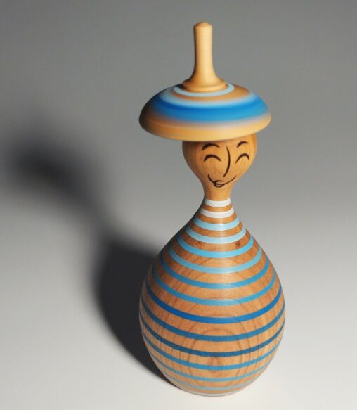 Toupie dame « à part » réalisée par mes mains au tour à bois en 2025, en érable et peinture acrylique.