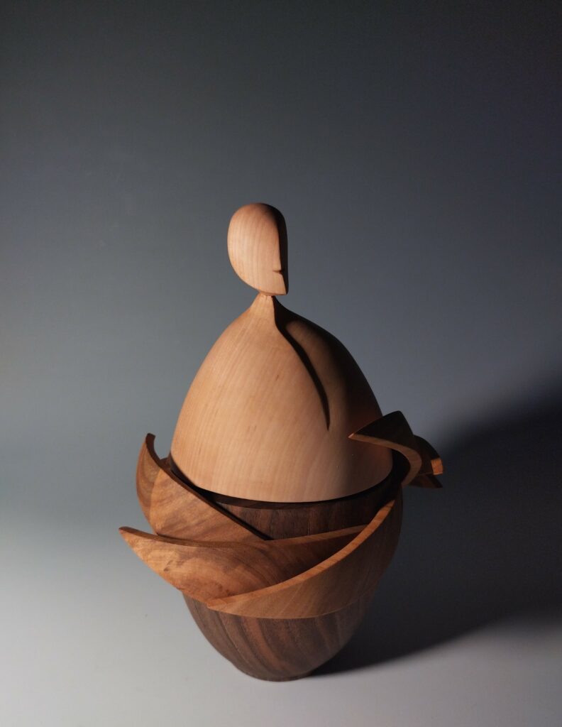 Cette dame est en bois d’alisier et de noyer. Elle est enveloppée de bois d’amandier.
