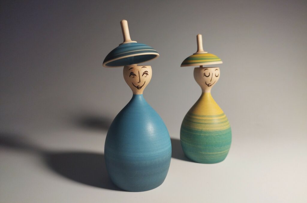 Les toupies dames sont joyeuses, originales et sont surtout une création personnelle. Vous trouverez ici un lien vers chaque collection de toupies dames. Pour découvrir l’histoire de mes toupies dames, cliquez ici.