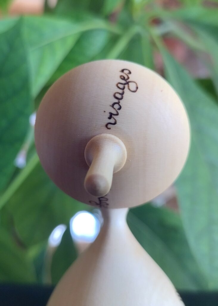 Toupie dame « à part » réalisée par mes mains au tour à bois en 2025, en érable.